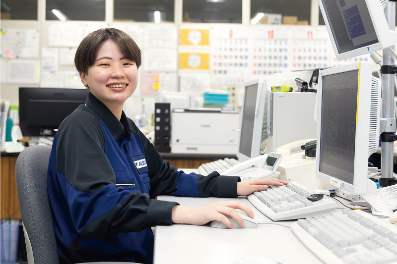 ガードセンターでは、お客さまからの電話対応や警報の監視を行っています。信号を受信したら警備員を現場へ向かわせる指示を出し、必要に応じて警察・消防へ通報を行うことも。1件1件状況や対応の仕方も違うので、臨機応変に行動しなければならない難しさはありますが、女性社員もいるので相談しやすいです。