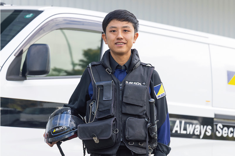 契約先の会社や個人宅への侵入が疑われる場合や、設備機械に異常があった時に出向いて解決する仕事です。銀行のATM障害や交通事故が起きた際の対応も。心がけているのは相手の話をしっかり聞き、優しく接すること。私たちが行くことで安心される様子を見ると、社会に役立つ仕事をしていることを実感します。