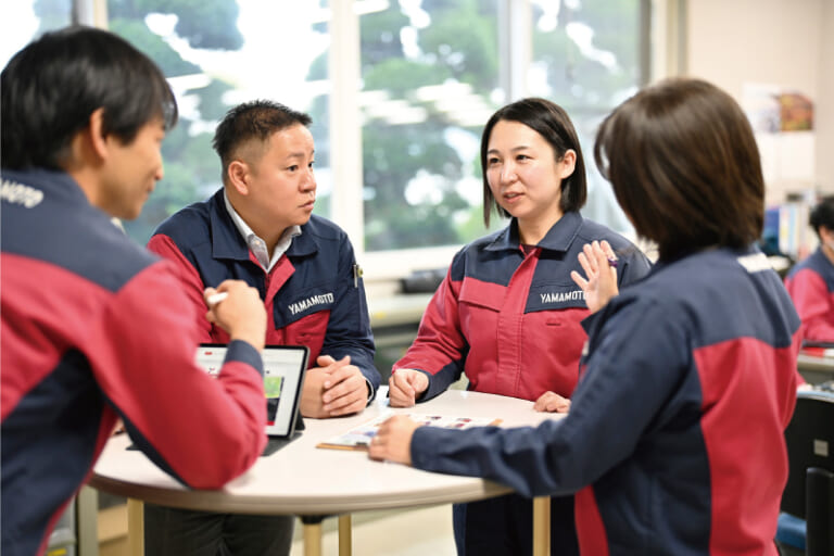 様々な年代の同僚たちと年齢に係わらず、やりたいことや困り事をお互いに話し合える職場です。皆が積極的に仕事に取り組んでおり、自分も頑張ろうと思える雰囲気が、TPR工業の魅力の1つ。一方で、休憩中はプライベートの話で盛り上がることもしばしば。話すことが楽しいと日々感じられる、明るい職場です。
