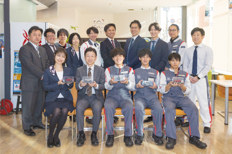 当社が何より大切にしているのは「人」です。業務管理の効率化、働き方改革に本気で取り組んできました。年間休日120日以上、週休二日制、有給休暇は最低5日。サービス残業は禁止。お昼休みも必ず1時間確保するなど、法令順守とコンプライアンスを徹底しています。社内には笑い声があり、明るく元気に仕事をする空気があります。「このお店は明るいね」とお客様に言っていただけることが、私たちの誇りです。社員一人ひとりが遠慮なく意見を言い、会社の未来を語れる風土を大切にしています。創業者・本田宗一郎の「人間尊重」の精神を受け継ぎ、人があってこその会社であり続けたいと考えています。