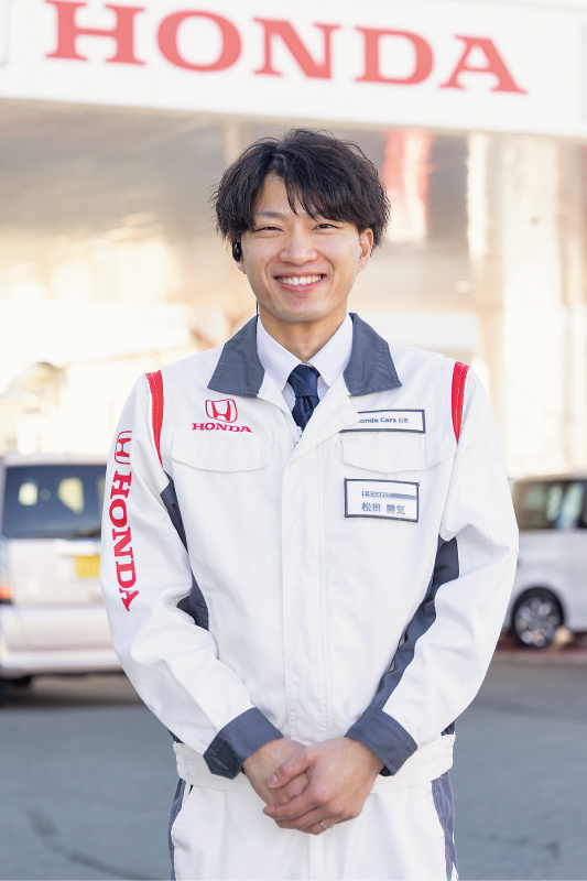 2014年にサービススタッフとして入社し、現在は下条店でサービスフロントの業務を担当している松田さん。整備や修理の受付、