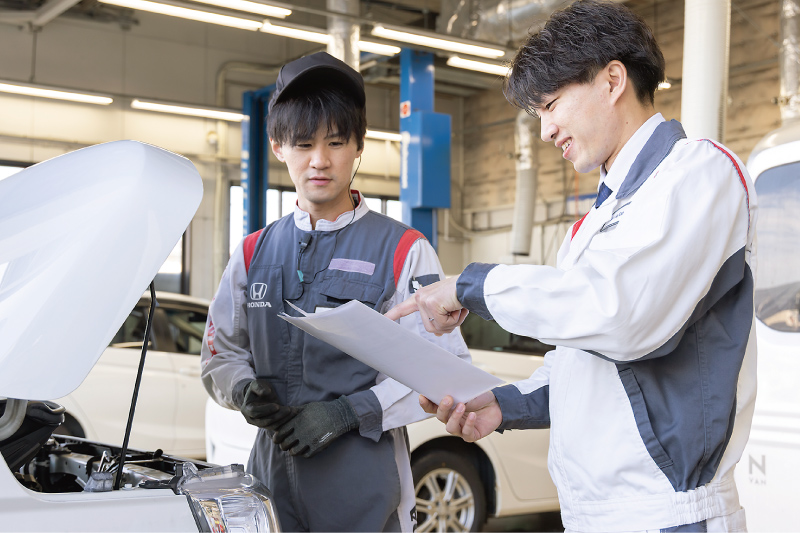 定期点検や車検、事故や故障などのトラブル対応など、来店されたお客さまのご用命をお聞きします。