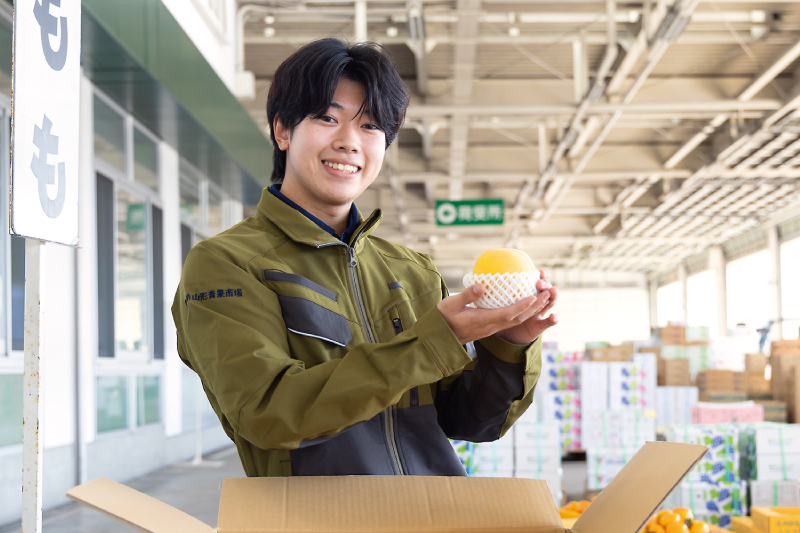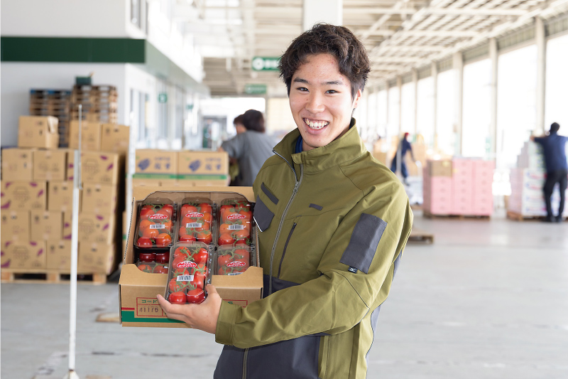 農林大学校でトマトの専門知識を学び、生産者と消費者の橋渡し役として食生活をサポートしたいという思いから入社しました。多くの商品を市場で売り切った時や、スーパーの店頭に自分が携わった商品が並んでいるのを見ると、大きなやりがいを感じます。大学校での専門知識は、生産者やバイヤーとの信頼関係を築く上で大きな強みです。今後も意欲的に仕事に取り組み、信頼される存在を目指していきます。