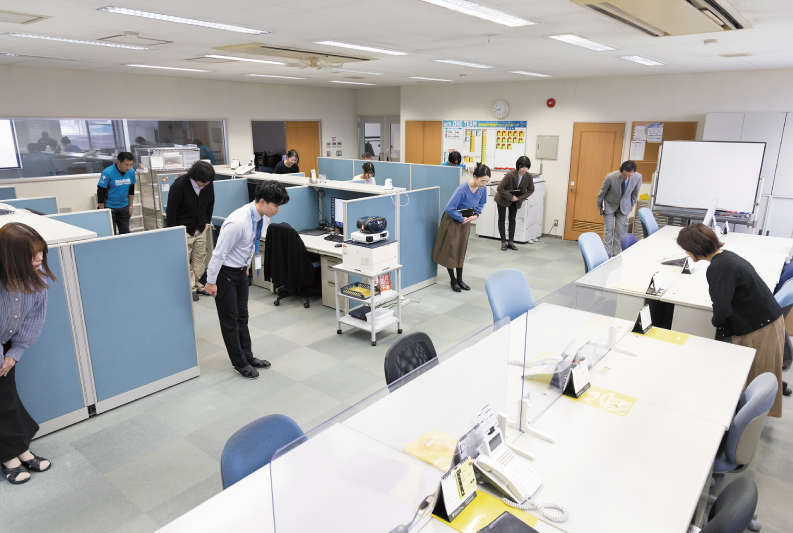 当日の印刷物のスケジュールや、仕事の共有を行い、効率よく仕事をするための打ち合わせを実施しています。