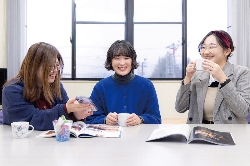 山形の企業をサポートする当社を支えているのは、スキルの高い社員たちです。みんなが「雑誌の仕事に携わりたい」「WEBをつくりたい」「グラフィックデザイナーとして成長したい」など明確な目標を持って入社し、働いています。それだけに仕事への向き合い方も意欲的。やる気にあふれています。素直でプラス思考、勉強好きな人なら、一緒に笑い合いながら仕事を楽しんでいけると思います。混迷とした時代に暮らす私たち。だからこそ、長い時間を過ごす会社は自分らしく生きるための場所であるべき、そう考えます。