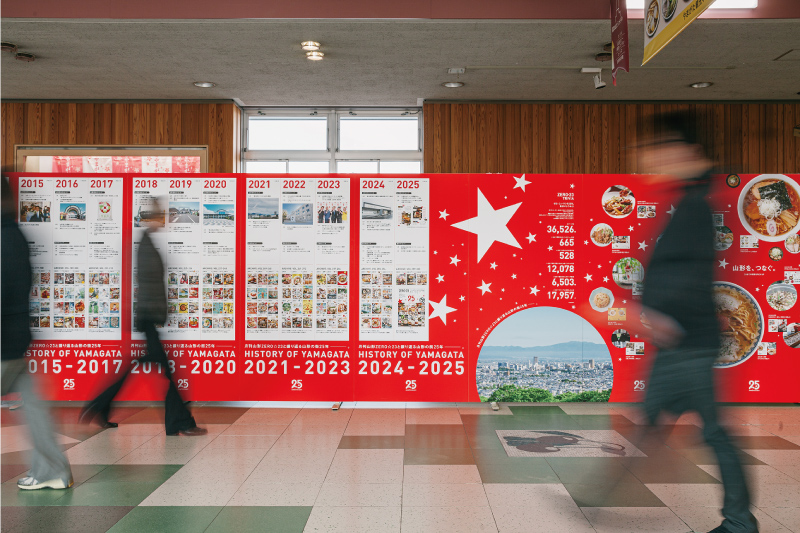 山形の魅力を発信し続けている月刊山形ZERO☆23。創刊から25周年を記念し、昨年山形駅東西自由通路にて300号までの表紙や年表を掲示。多くの人が足を止め、懐かしんでいたようです。