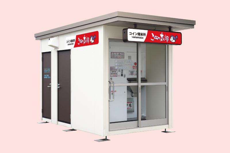 コイン精米機「こめ太郎」RCS-4000A 道端で見かけるコイン精米機。全国で見かける赤い看板のものは、すべて山本製です。