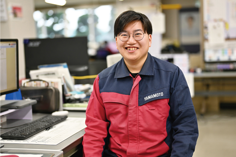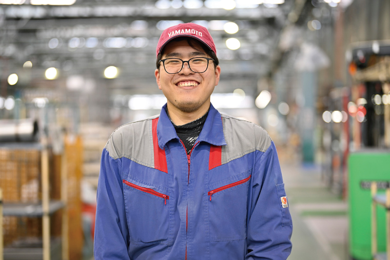 製造現場で自分の技術を生かし、高めていけることがとても楽しいです。鉄板の曲げ加工をしていますが、いかに速く正確に作業できるか、工夫しながら取り組んでいます。また社内の制度を利用して、さまざまな資格を取得できるのも嬉しいですね。