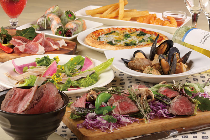 新米つや姫の名物ミスジローストビーフ丼と、ハーブを効かせた仔羊のローストの2つのメインが味わえるプランが登場。そのほかにも旬の野菜と新鮮魚介のカルパッチョから人気の生春巻など季節の食材を使った料理が盛りだくさん!! そして何と言っても飲み放題が豊富。生ビール、超炭酸ハイボール、カクテル100種、ワイン、50種のノンアル類、山形の地酒から本格焼酎などプレミアムなラインナップ★ まずは問い合わせを!