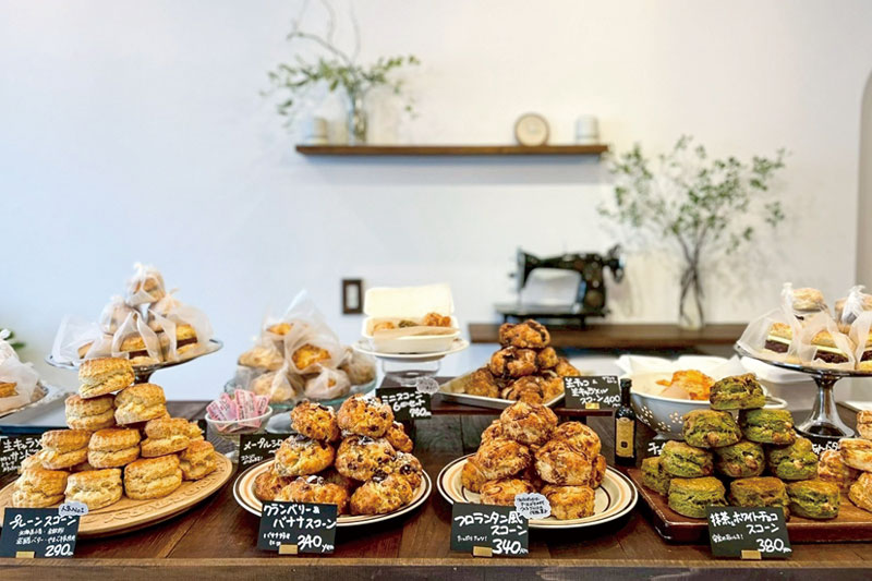 お店で焼き上げるスコーンは、定番のスイーツ系、ボリューム満点のサンド系、チーズやオリーブを使用したおつまみ系まで、10~12種類ほど。やまべ牛乳や発酵バターを使用し、あんこや生キャラメルも手づくり。すべての素材に心を込めたスコーンをぜひお楽しみください。