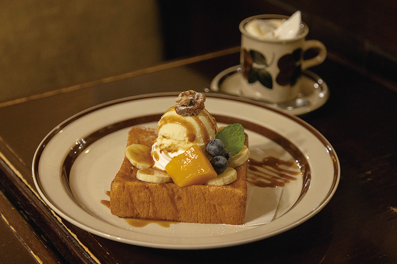 生豆から仕入れるコーヒーは自家焙煎。曜日ごとに豆の種類が変わる日替珈琲を楽しめ、ARABIA(アラビア)のヴィンテージマグで供する「日替たっぷり珈琲」が人気です。挽きたての豆で淹れる一杯を片手に読書をしたり、友人との会話を楽しんだり。名物のトーストや焼きたてのワッフルを味わいながら、思い思いの時間を過ごせます。