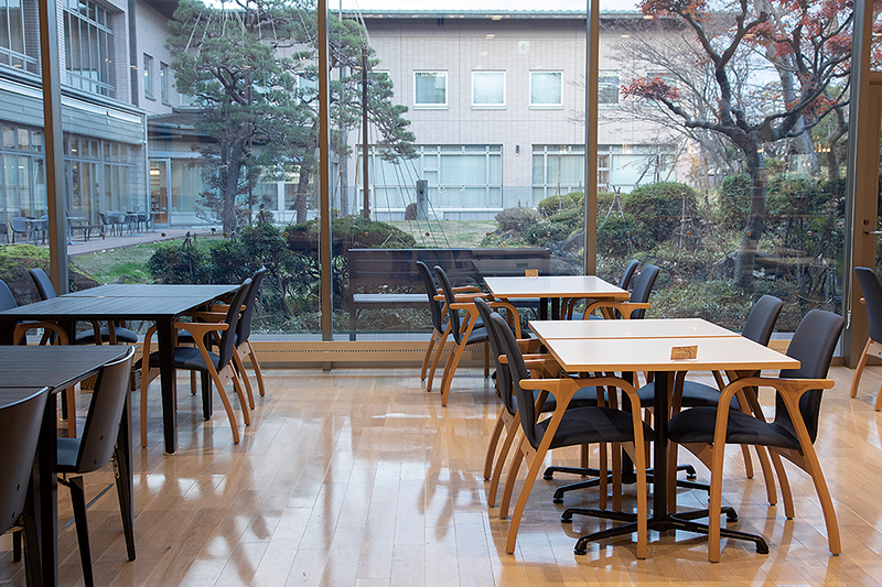 秋が深まるこれからは、庭園を望むテラス席が特等席。紅葉を眺めながらカフェタイムを過ごせます。サンマや食用菊「もってのほか」など山形の季節食材を使ったパスタも、この時季ならでは。