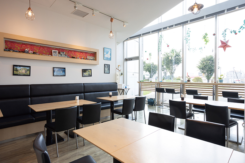 サンドイッチは定番に加え、季節限定も好評で、これからはシャインマスカットが登場予定。図書館の利用者は、直結カウンターからドリンクをオーダーできるのも便利です。