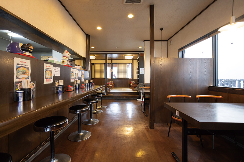 前店主から直接ラーメンづくりの指導を受けて、継承した変わらぬ一杯を提供しています。一度食べるとハマって通う熱狂的ファンがいるという看板ラーメンが、もっちりとした食感の極太麺を堪能できる「にぼしDX」です。麺は一人前なんと300g。背脂のほどよいコクが加わって、気づけば箸が止まらず食べ切ってしまうから不思議です。細麺ですっきりと仕上げた「にぼしDXスマート」や、季節の食材で仕立てる期間限定のラーメンもあり。