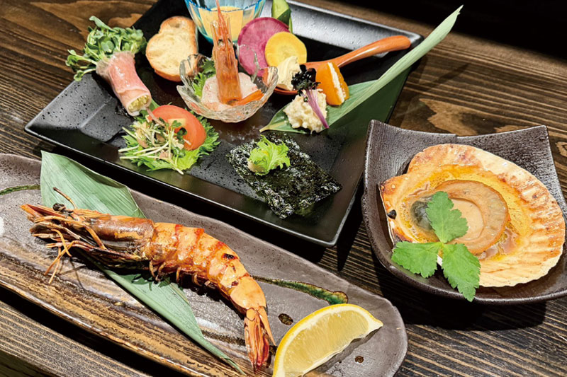 焼場を囲む広いカウンター、隠れ家的な半個室、12名まで利用できる小上がり。大人が落ち着いて飲める居酒屋が香澄町にオープン。仕事や接待にも気軽に利用できると早くも人気です。メニューは、網焼き、ステーキ、創作和食など、素敵な料理がたくさん。日本酒は山形の地酒が並びます。