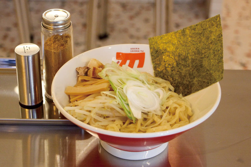 中毒者続出の油そば専門店。風味豊かな鰹オイルが絡むモチモチの太麺を、まずはシンプルに。お酢やマヨネーズ、花椒(ホアジャオ)香る手づくりラー油で、自分好みにカスタムするのも楽しみのひとつ。シメの追い飯やエビ水餃子を合わせれば、さらに満足度アップ。笑うしかないおいしさです。