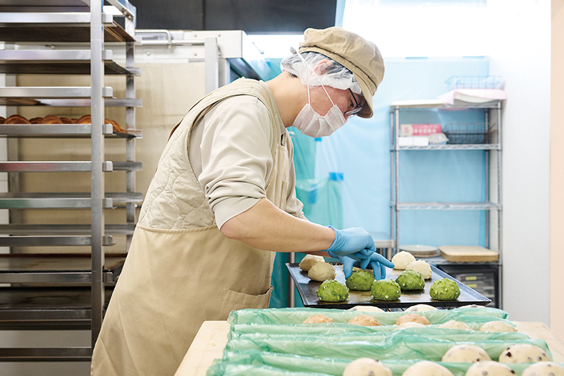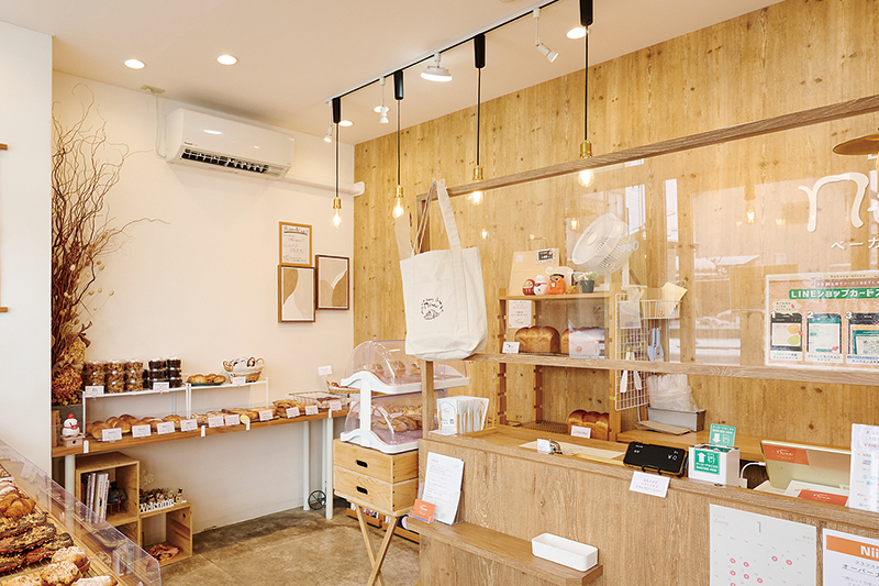 天然酵母を加え、低温で一晩寝かせて発酵させた生地の成形から始まります。開店時間に並ぶパンは30種類。幹線道路に面していることもあり、平日の朝は焼きたてのパンを求め、通勤途中に立ち寄る人が多いとか。土・日曜は、朝食用に30個以上のパンを購入するファンも。「少なくなった商品から追加していき、多い日は50回以上焼いています」と店主。それでも、オーバーナイト製法にこだわったパンは、昼過ぎには売り切れてしまうほど人気です。ニーナオリジナルのコーヒーとともに、心地よい時間を楽しんで。