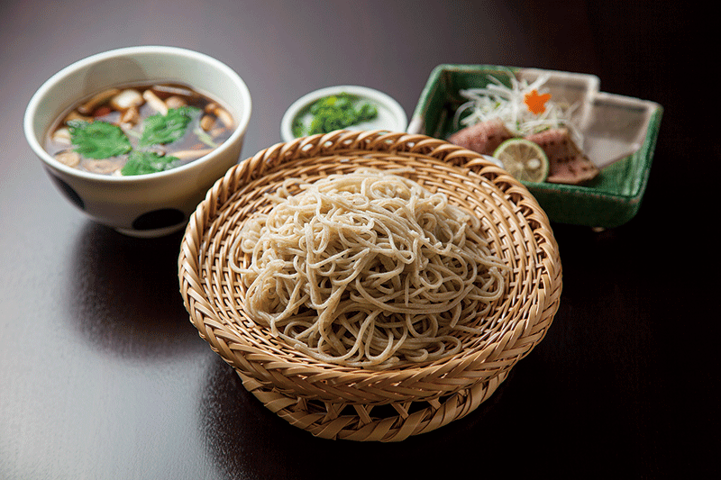 看板メニューのせいろから、季節限定の変わりそばまで楽しめる人気店。最上・村山地域や北海道の契約農家が育てた玄そばを自家製粉しています。気温や湿度に合せて打つそばは香り高く、のど越しなめらか。つゆは本鰹に羅臼昆布、どんこのだしに醤油にみりん、ざらめ砂糖を加えたかえしを合せたもの。化学調味料は使わずに仕上げています。