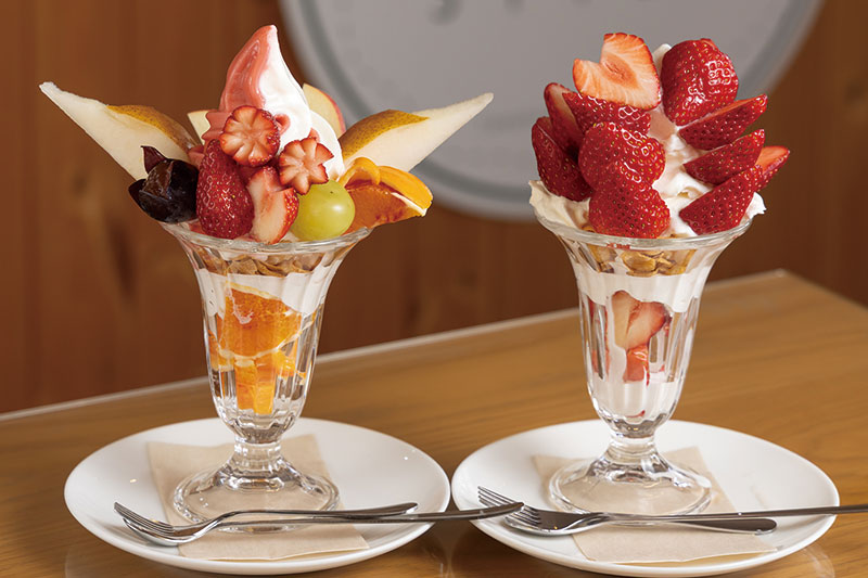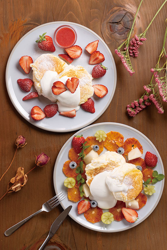 いちごパンケーキ 1,650 yen. 季節のフルーツパンケーキ 1,380 yen.