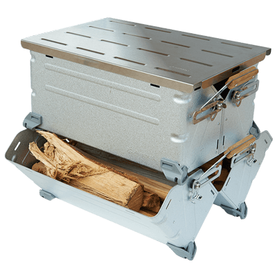 IDA-PANKO テーブルにもなるボックス。鍋やバーナーもおけるような補強も可(ステンレス部分は別料金の受注生産)。 |