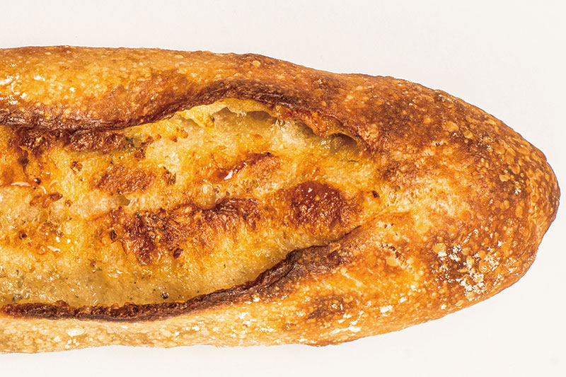 塩っけがいい 天然酵母を使用したフランスパン生地にベーコンを挟み、塩を振りかけて焼き上げたパン。折りたたんだ形をしているのが名前の由来。 |