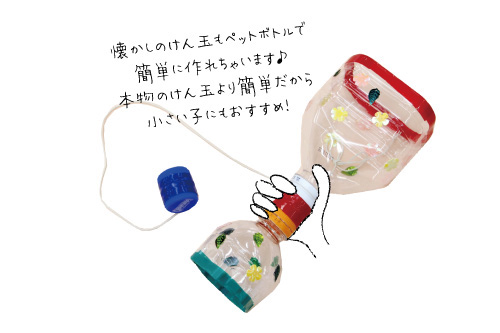 | 〈持ち手をつける場合〉 小さいボトルやトイレットペーパーの芯など、家にあるもので持ち手を作ってみよう! |