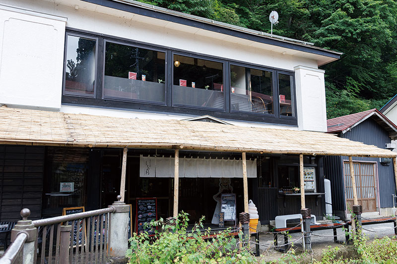 炎と煙をコンセプトにした、炭火焼とせいろ蒸しが自慢の食堂。お肉を使ったメニューが豊富にそろい、地元の旬の食材をふんだんに取り入れた定食から、丼、鉄板焼き、デザート、小腹が空いた時にうれしいテイクアウトメニューまで。温泉街の一番奥にあり、2階からは「白銀の滝」も見ることができます。