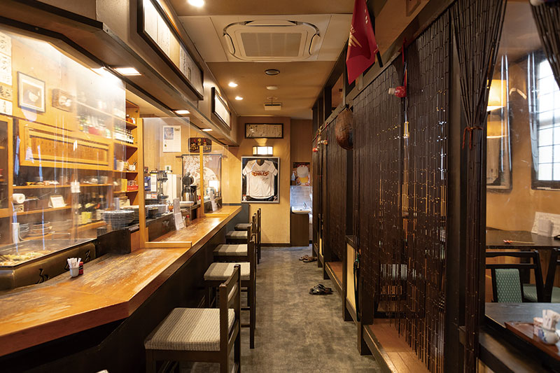 1933(昭和8)年創業、山形市七日町のふくろ。店独自のかつお節ベースのダシと代々受け継いできた秘伝のタレを合わせた上品な汁のおでんには、ファンも多数。糸こんにゃくや野菜を油揚げで包んだ「ふくろ」、今シーズンからの新メニューで半熟卵を魚のすり身で包んだ「ばくだん」など、どれも人気です。