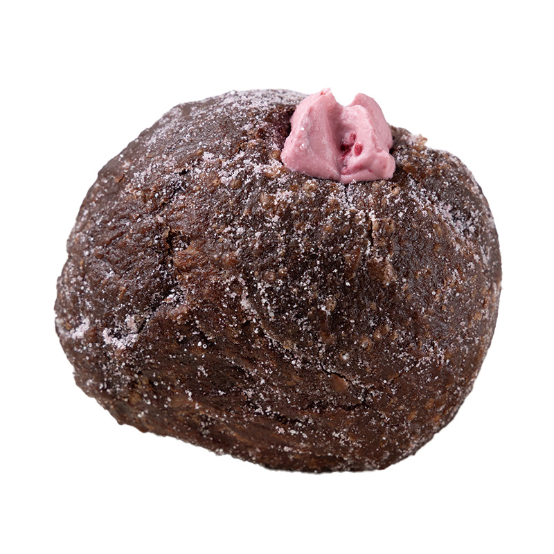 | ベリーカカオ 420円 甘さ控えめのカカオ生地に自家製のベリークリームがたっぷり。もちもちっとした食感、口の中でとろける甘酸っぱいクリームが最高! |