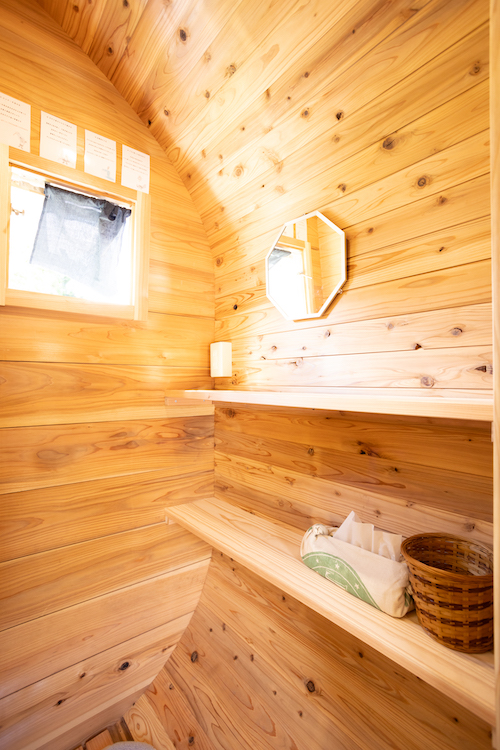はじめはキャンプ場の設置のみを考えていたとのことですが、家づくりで余った木材(木端)の活用方法も同時に模索していたため、薪ストーブを使ったサウナを設置することに至ったそうです。
